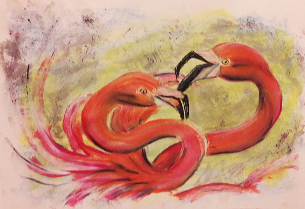 Zwei Flamingos (Pastellkreide)