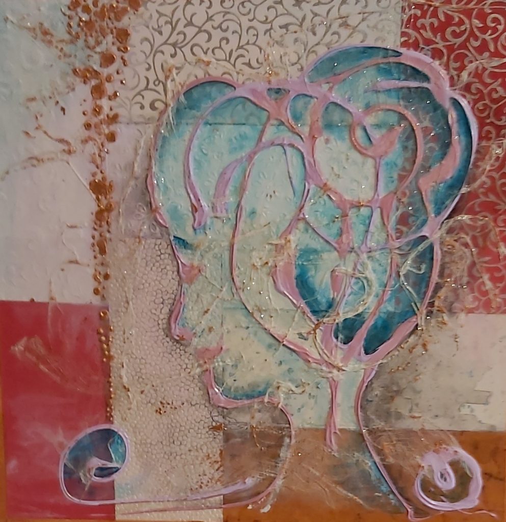 Wer es mag! (Collage aus verschiedenen Schmuckpapieren, gestaltet mit Acrylfarbe und -paste sowie Maulbeerbaumrinde)