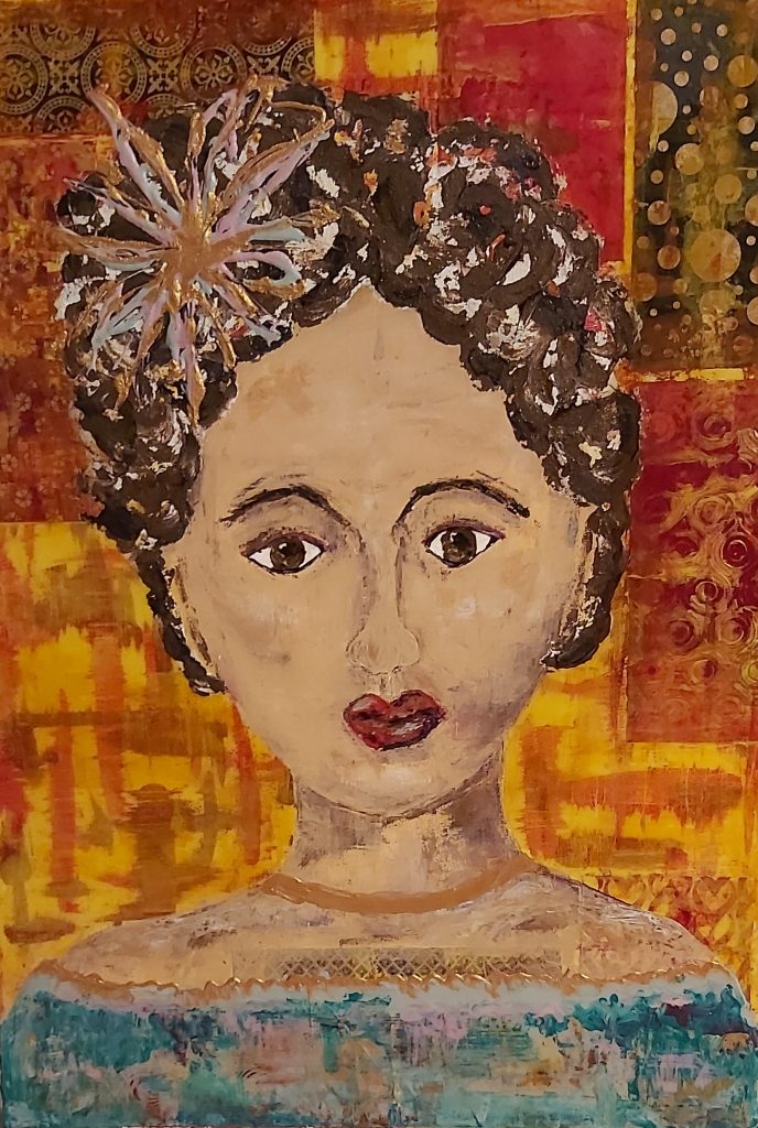 (Collage mit verschiedenen Papieren, Acrylfarbe und Resin)